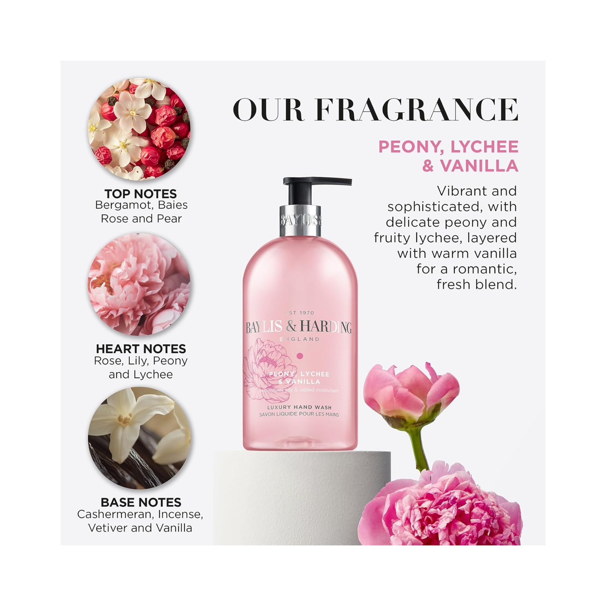 Baylis & Harding 奢华洗手液将日常清洁变为感官享受,配方经英国精制,pH 值温和,通过皮肤学测试,轻盈泡沫温柔覆盖双手,带走污垢的同时注入维生素 E 与天然保湿成分,令肌肤洁净柔滑。瓶身设计灵感源自现代家居美学,线条优雅流畅,既是实用清洁用品,更是洗手池边的点睛之笔。系列共五款甄选香型,从牡丹、荔枝与香草的细腻香气,到柠檬与薄荷的清爽活力,各自演绎专属嗅觉故事,为双手带来每日的奢宠时刻。产品采用 95% 可生物降解环保配方,纯素、无动物实验,兼具高效洁净力与环保责任感,是功能、美感与良知的完美结合。
